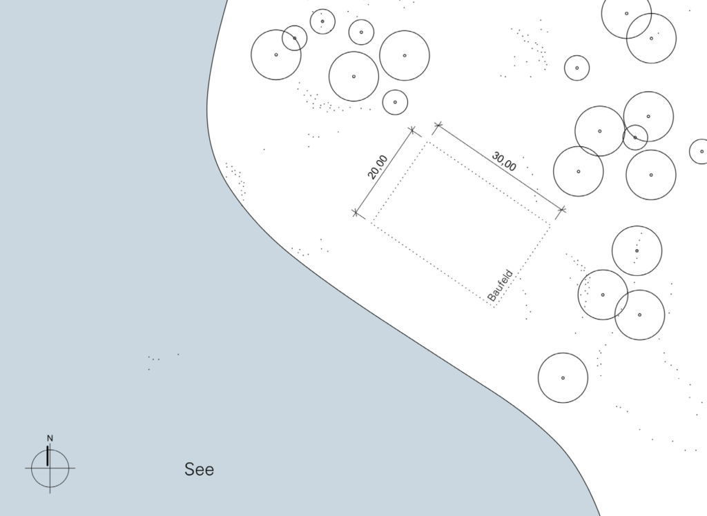 Ein Bootsverleih am Rursee möchte auf einem ufernahen Grundstück einen Kanu-Verleih einrichten und ein entsprechendes Lagergebäude für die Kanus und zusätzliche Ausrüstung bauen. Hierzu steht am Strand des Sees ein Baufeld mit Abmessungen von 20 x 30 m zur Verfügung.