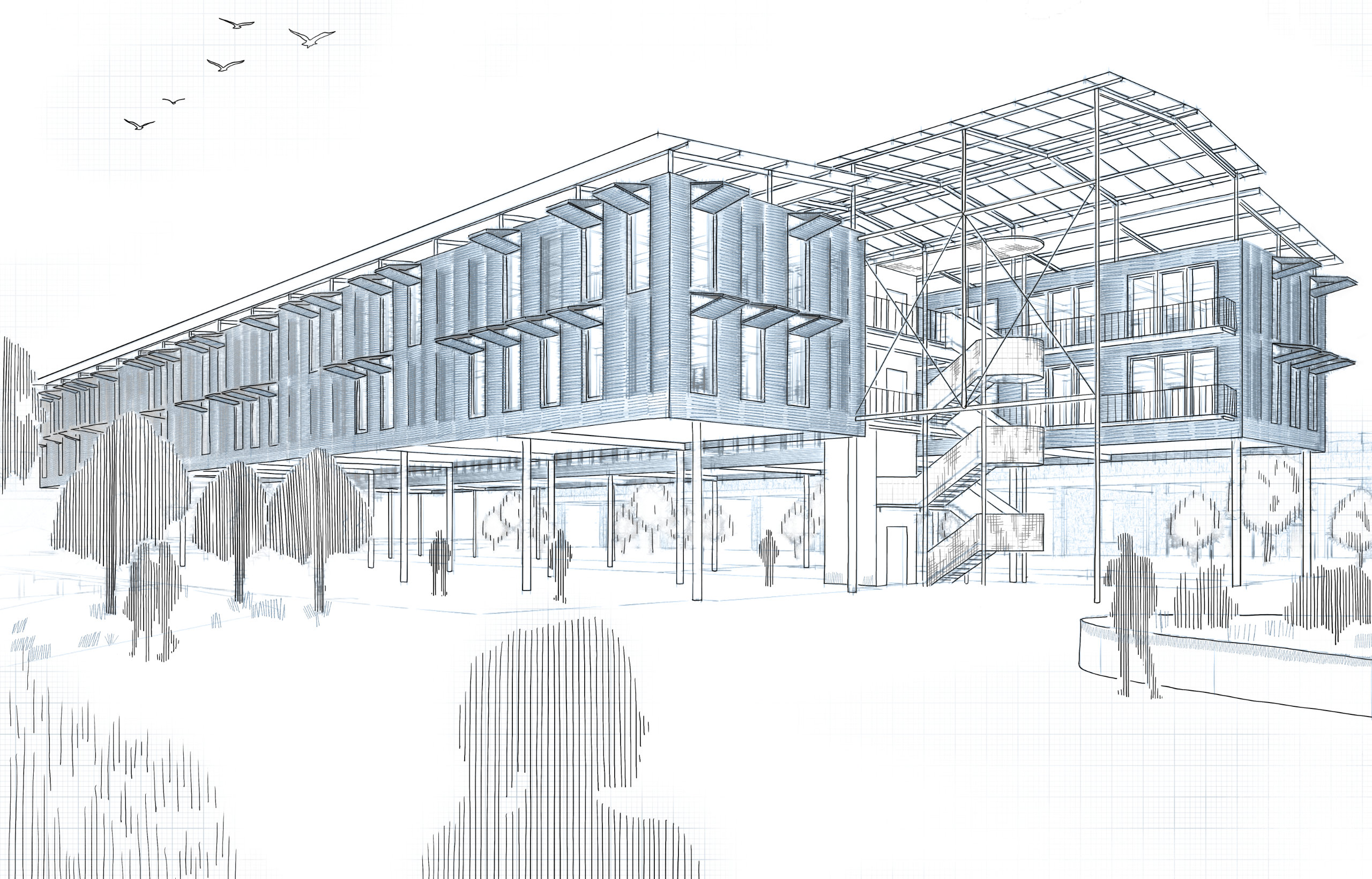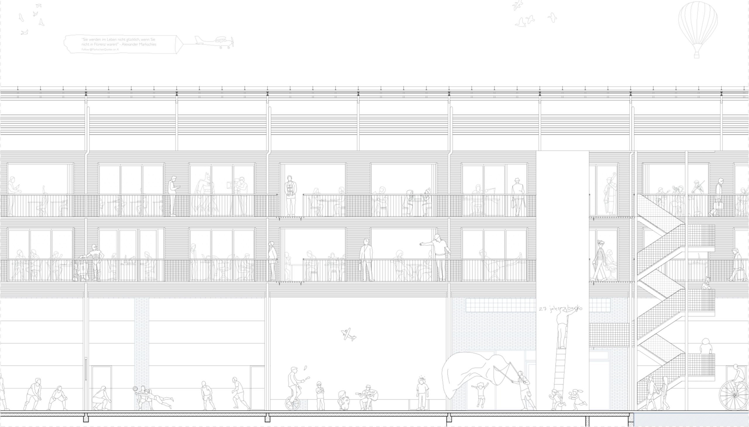 „Durch modulare Raster, erweiterbare Riegel und flexible Innenraumaufteilungen ist das Gebäude nicht auf eine einzelne Nutzung festgelegt, sondern bleibt über seinen Lebenszyklus hinweg transformierbar.“